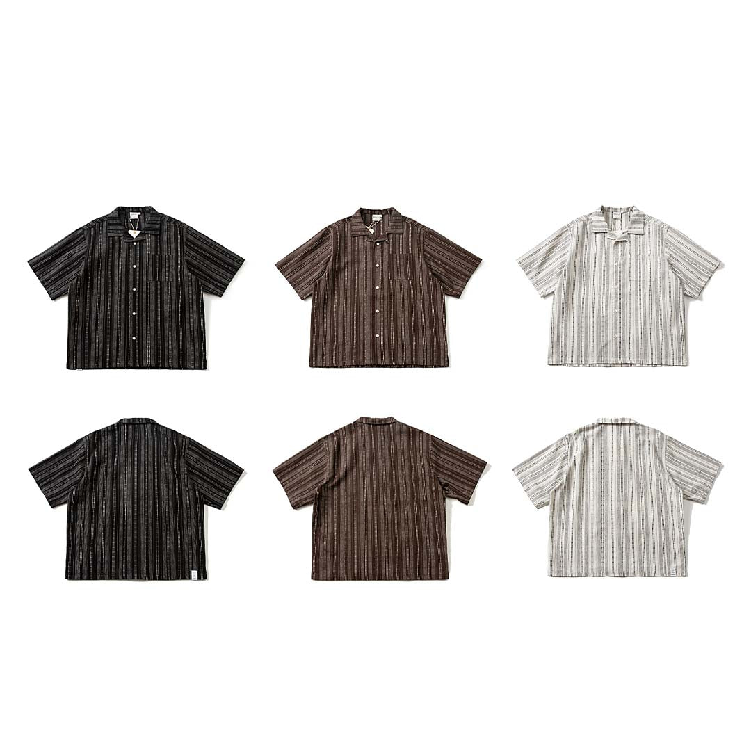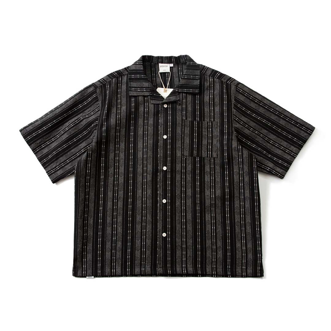Casual camp collared shirt in a textured pinstriped fabric.