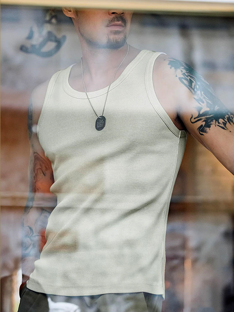 Basic ribbed vest in lightweight breathable cotton. Available in 2 colorways.