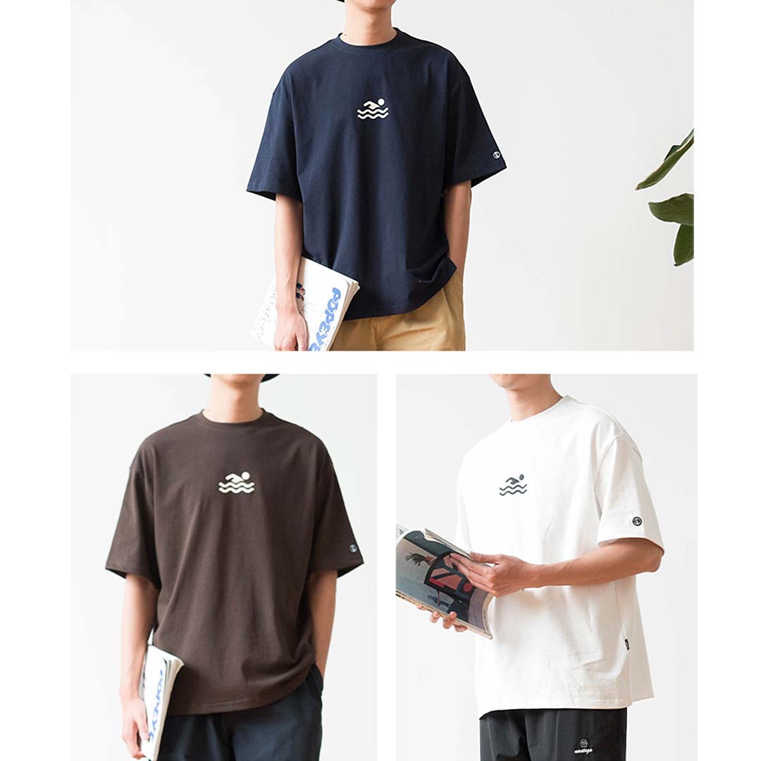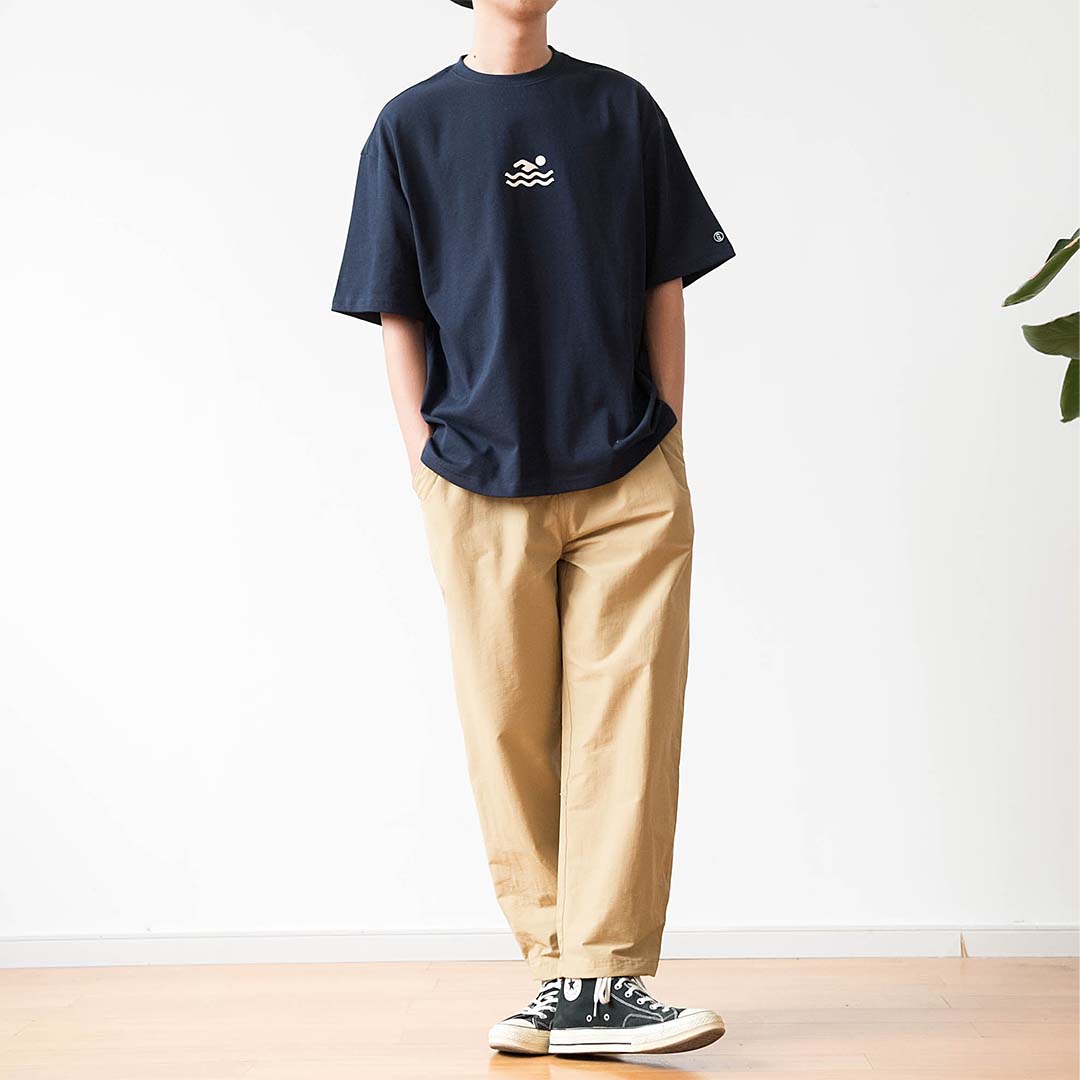 Printed short-sleeved tee. Available in Navy, White and Coffee.