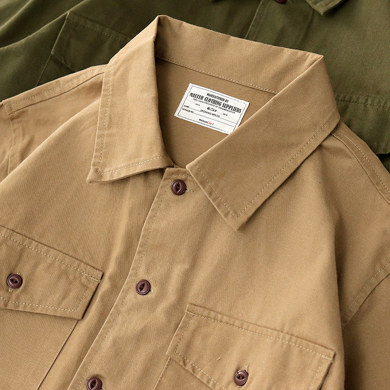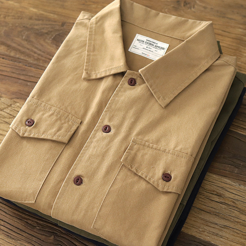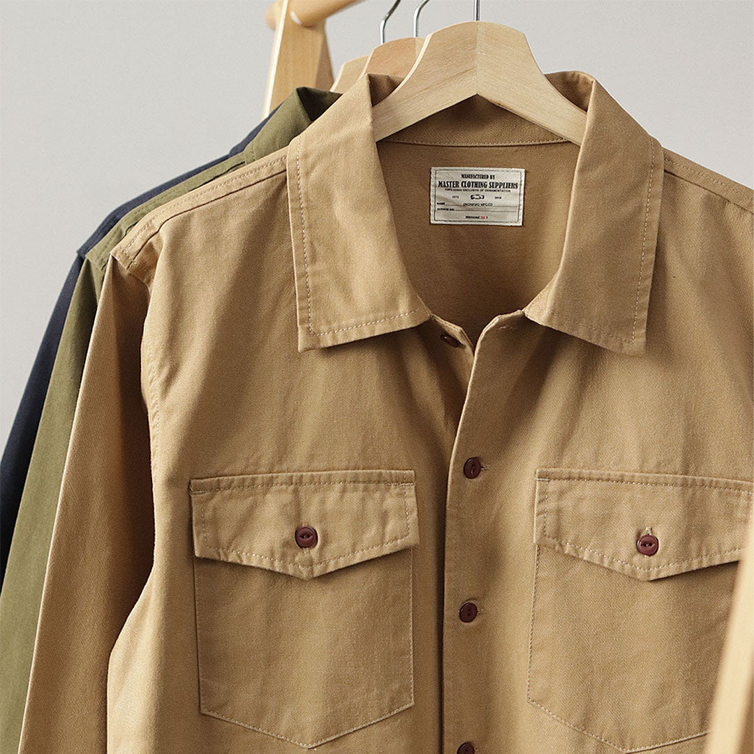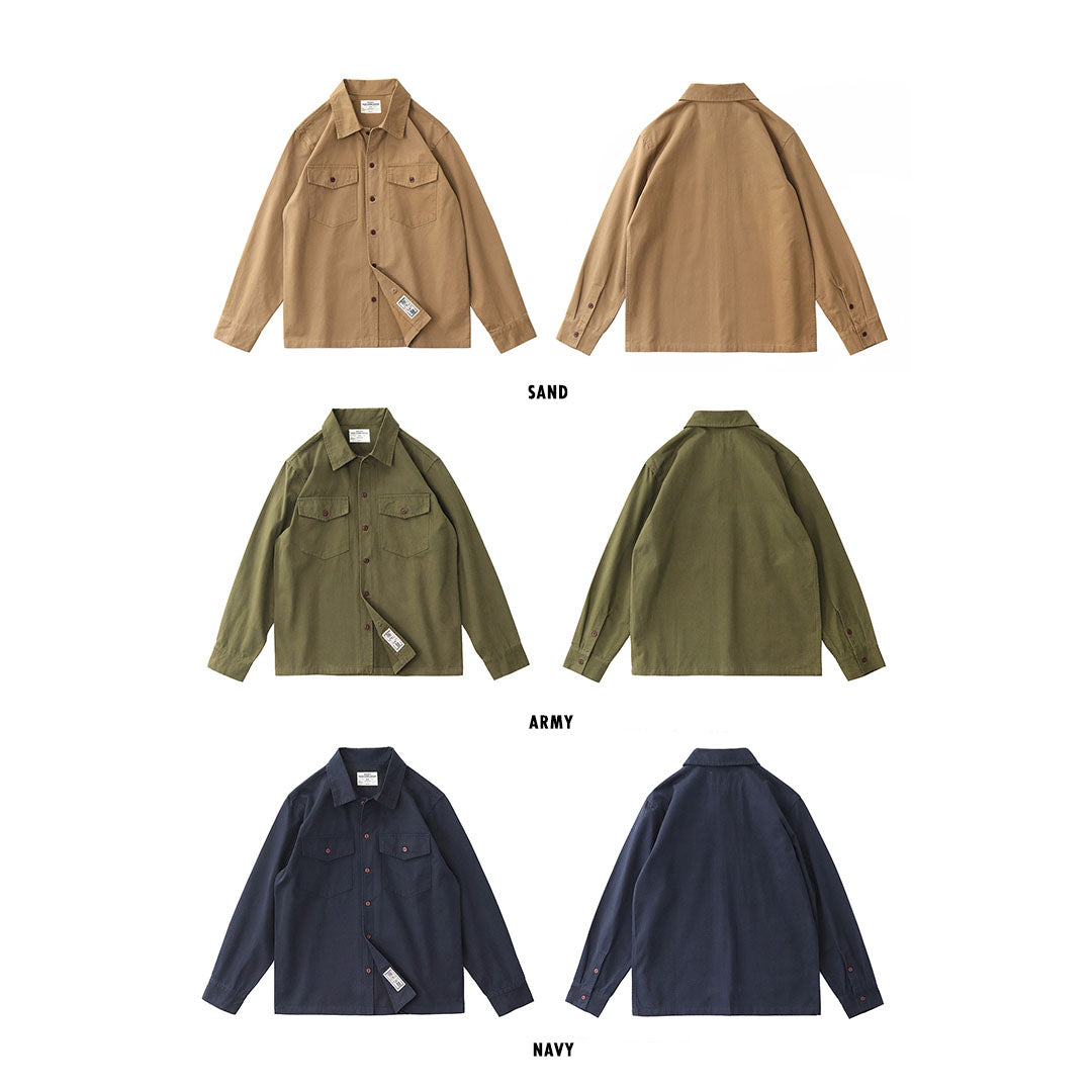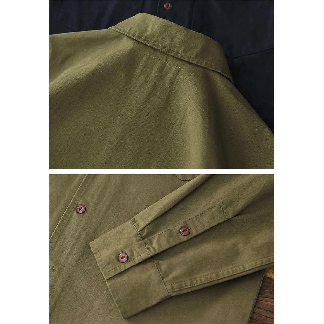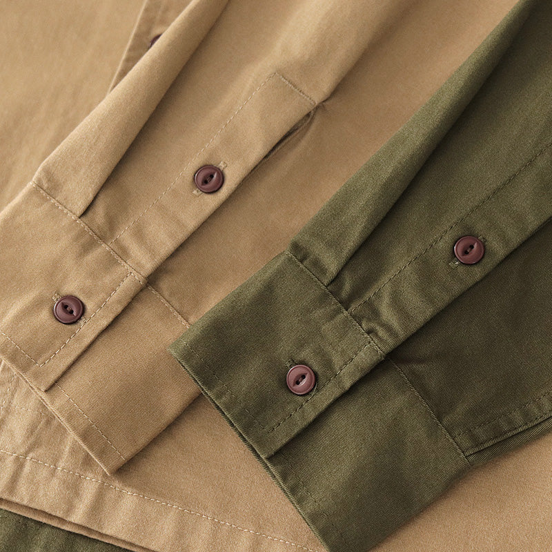 Functional workwear long-sleeved shirt with contrasting button detail, can be worn as a shirt or as an outerwear. Available in 3 easy-to-match colorways.