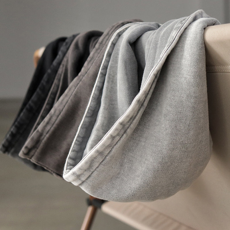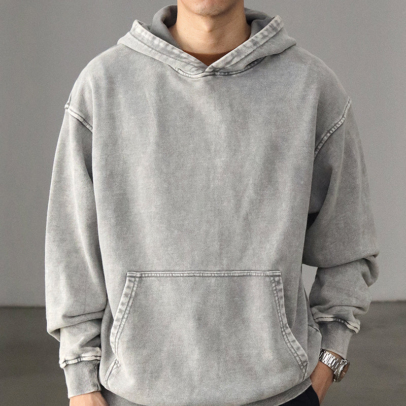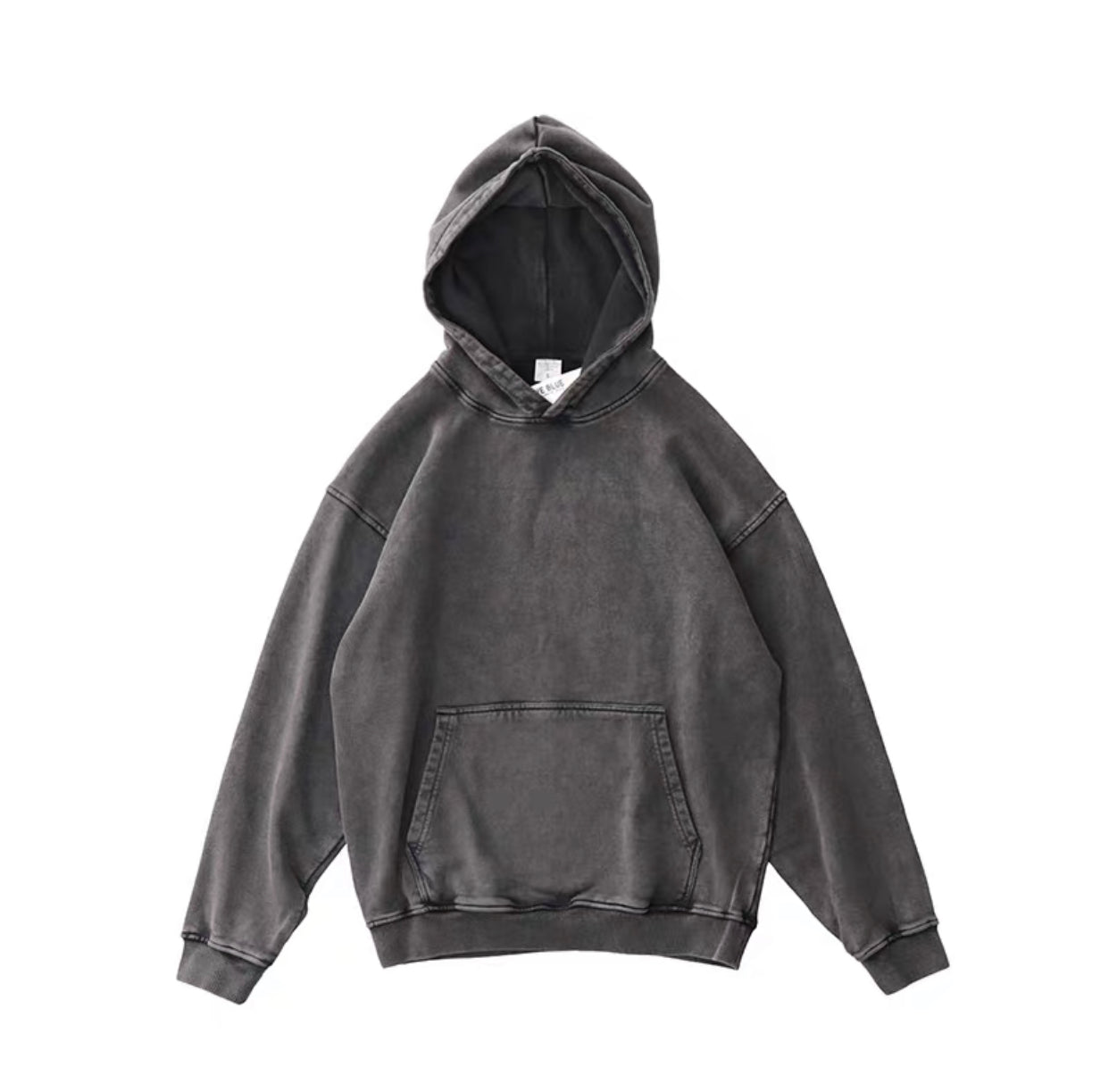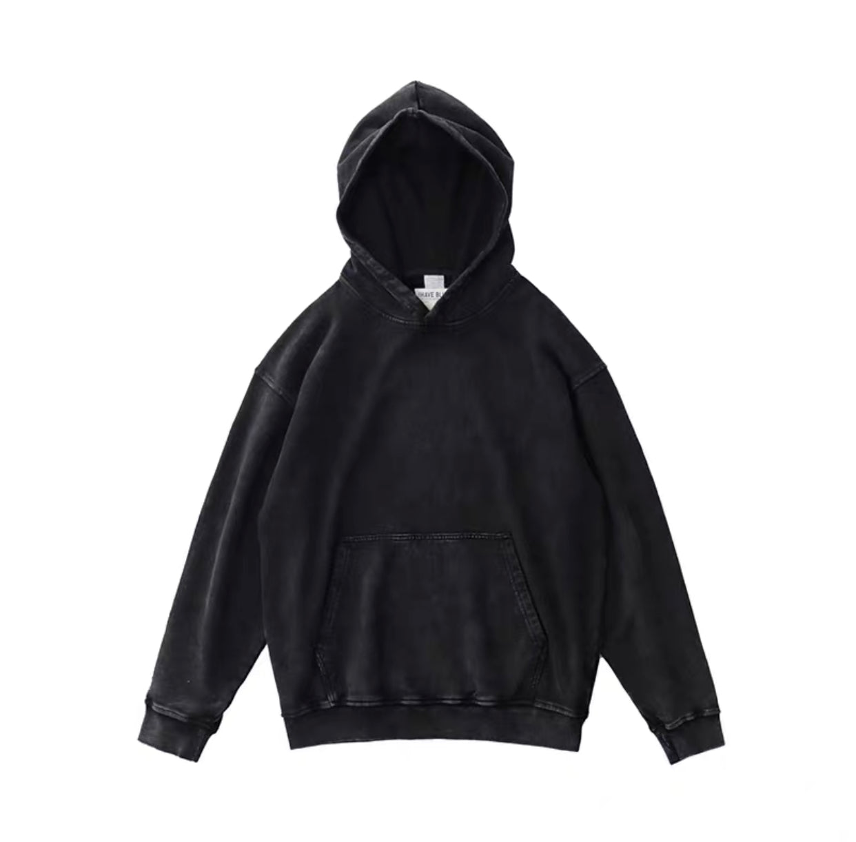 Basic hoodie silhouette with a washed fabric effect. Now available in 3 monochromatic colorways.