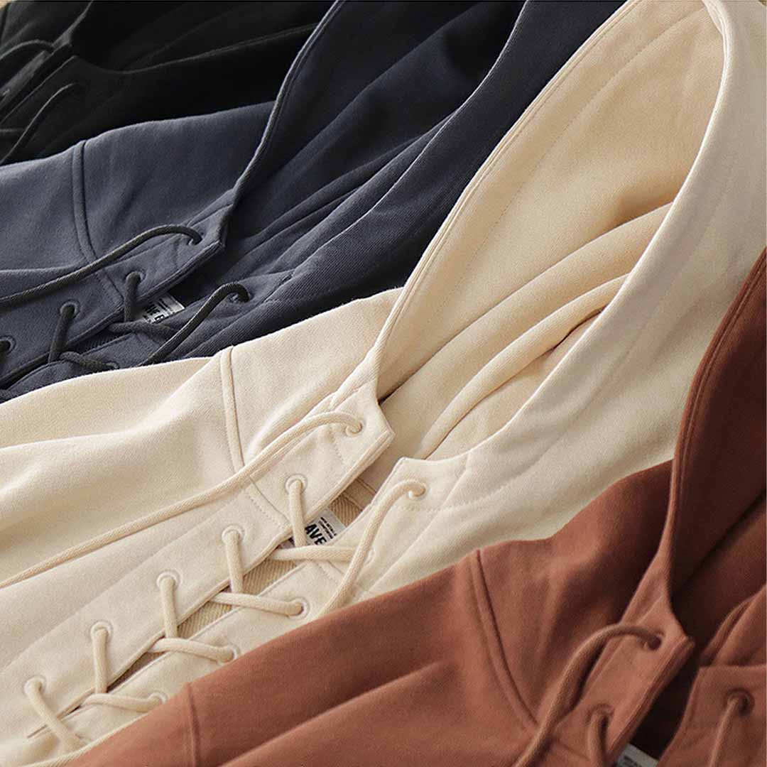 Your everyday casual hoodie in soft comfortable cotton with front lace detail. Available in 4 colorway.