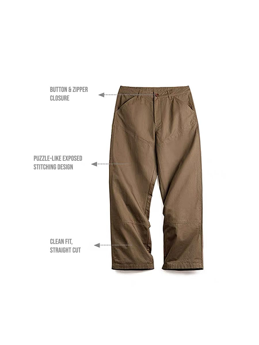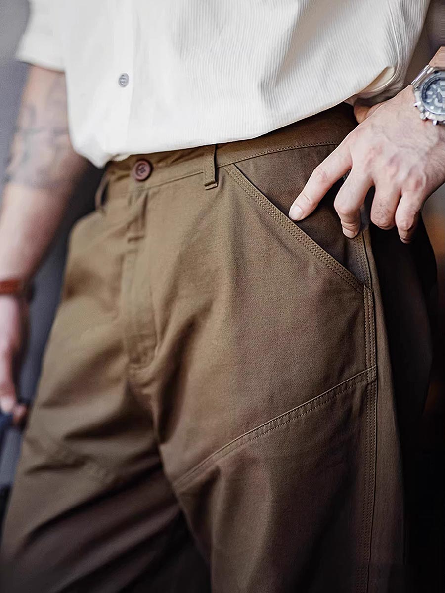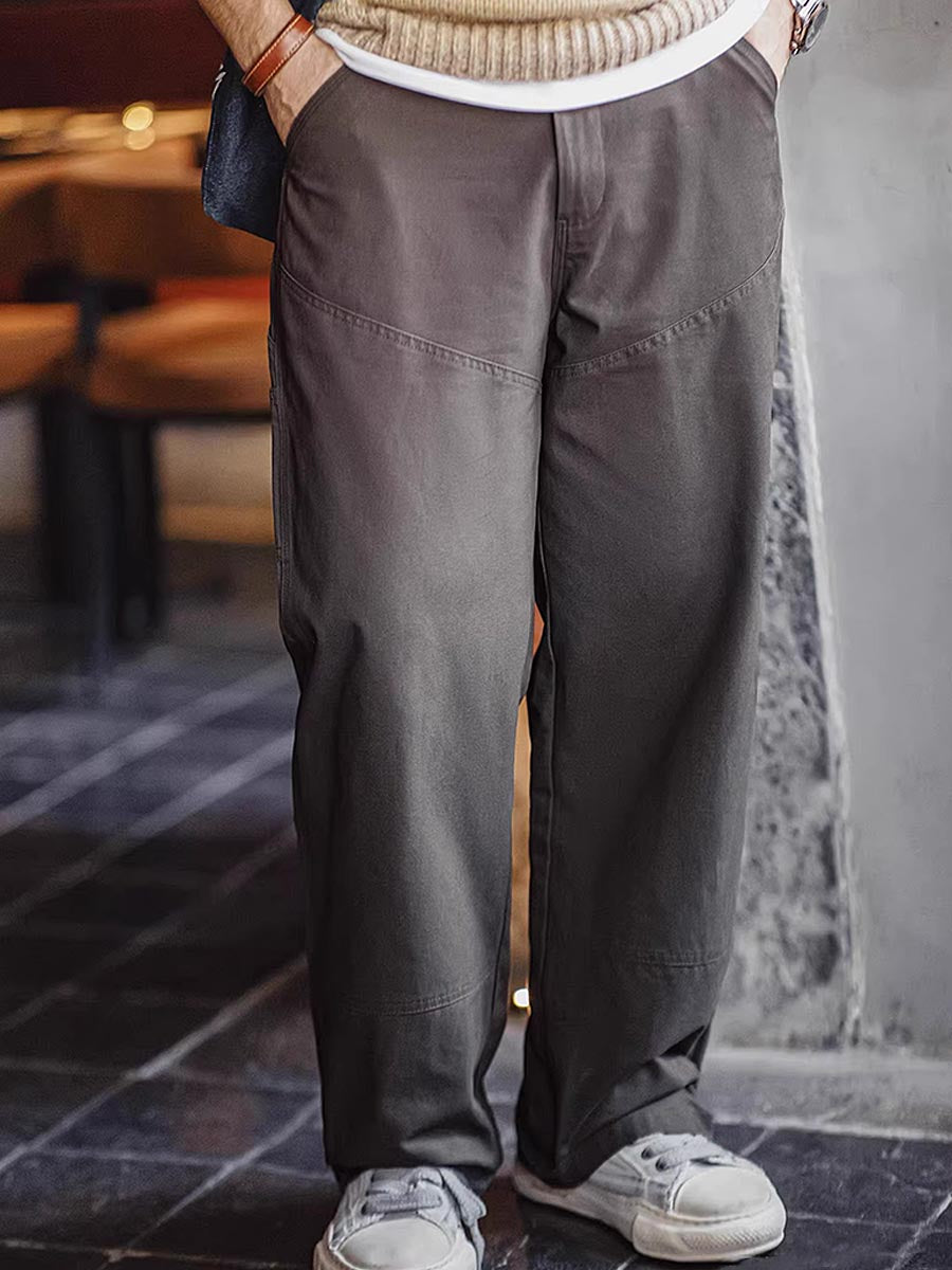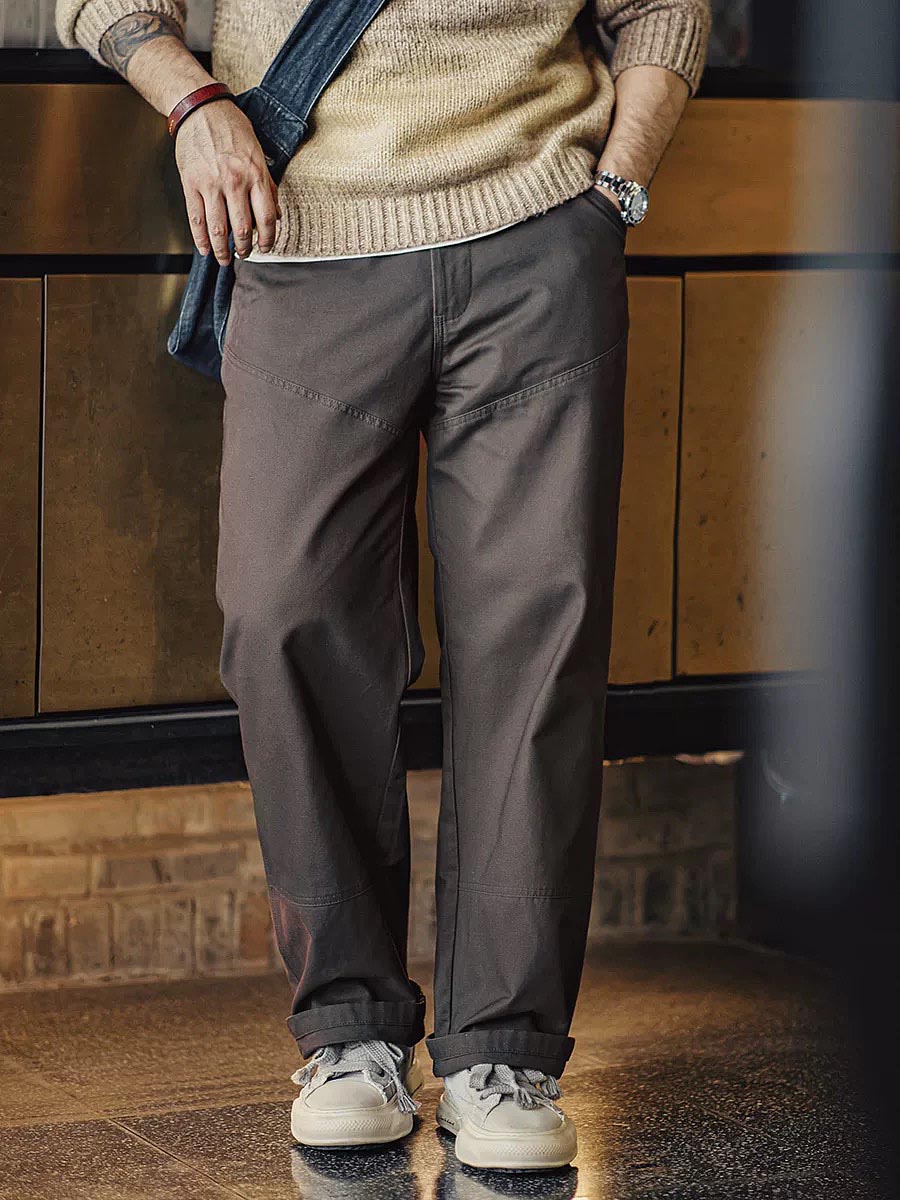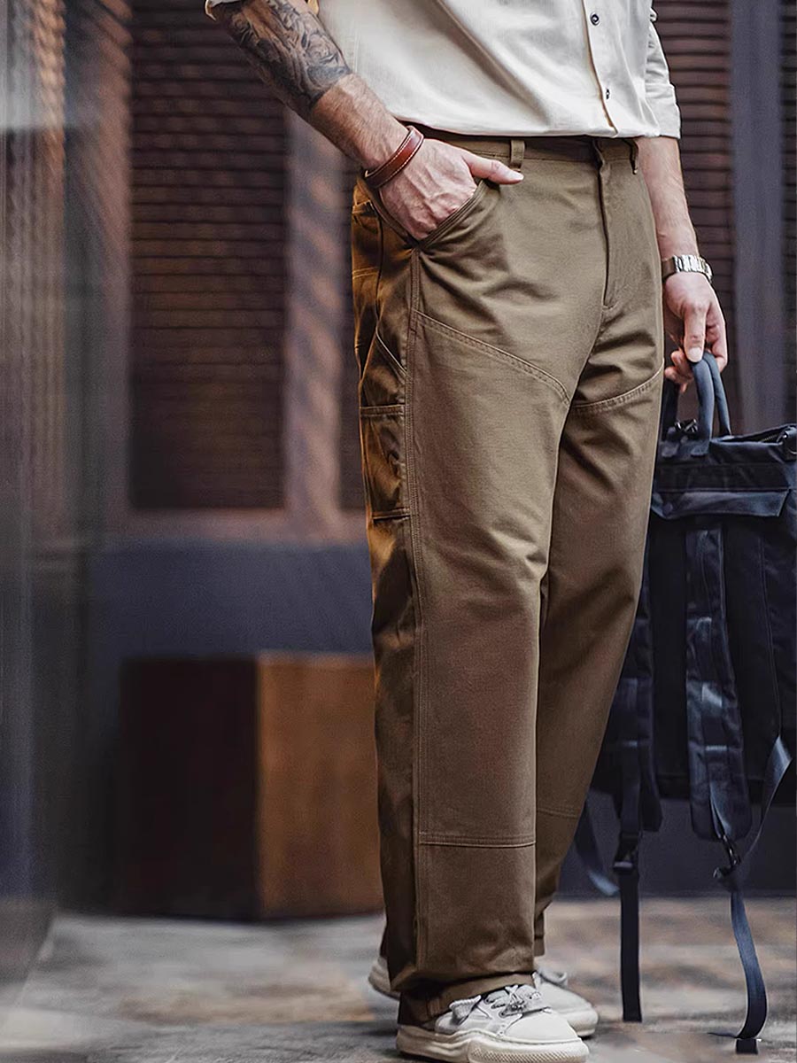 Straight-cut lumberjack trousers with exposed stitching detail.
