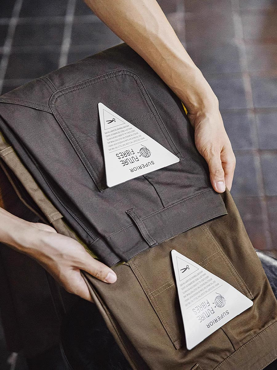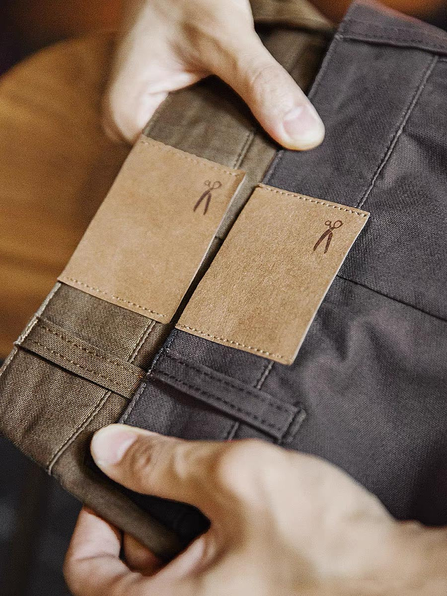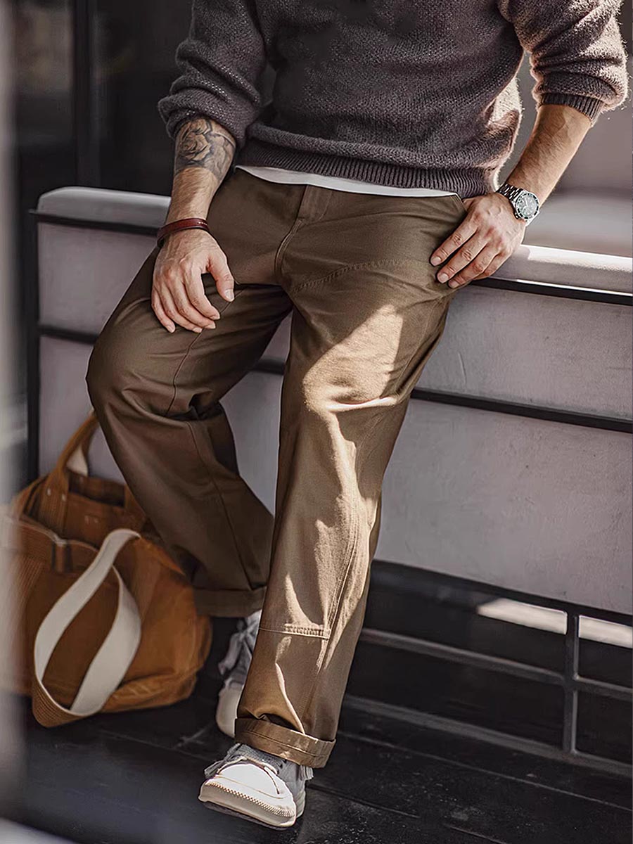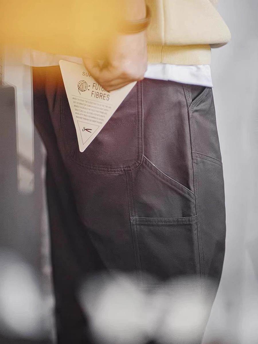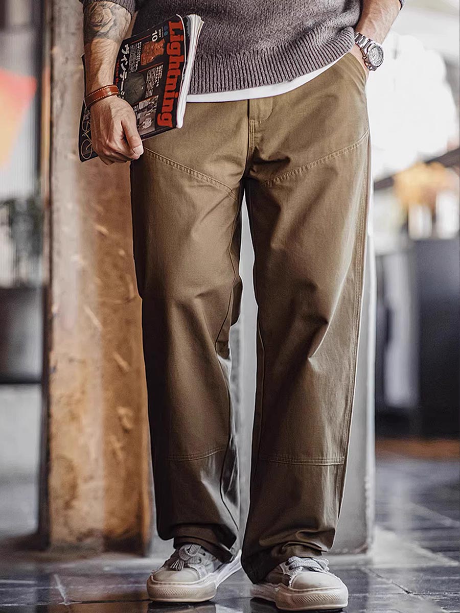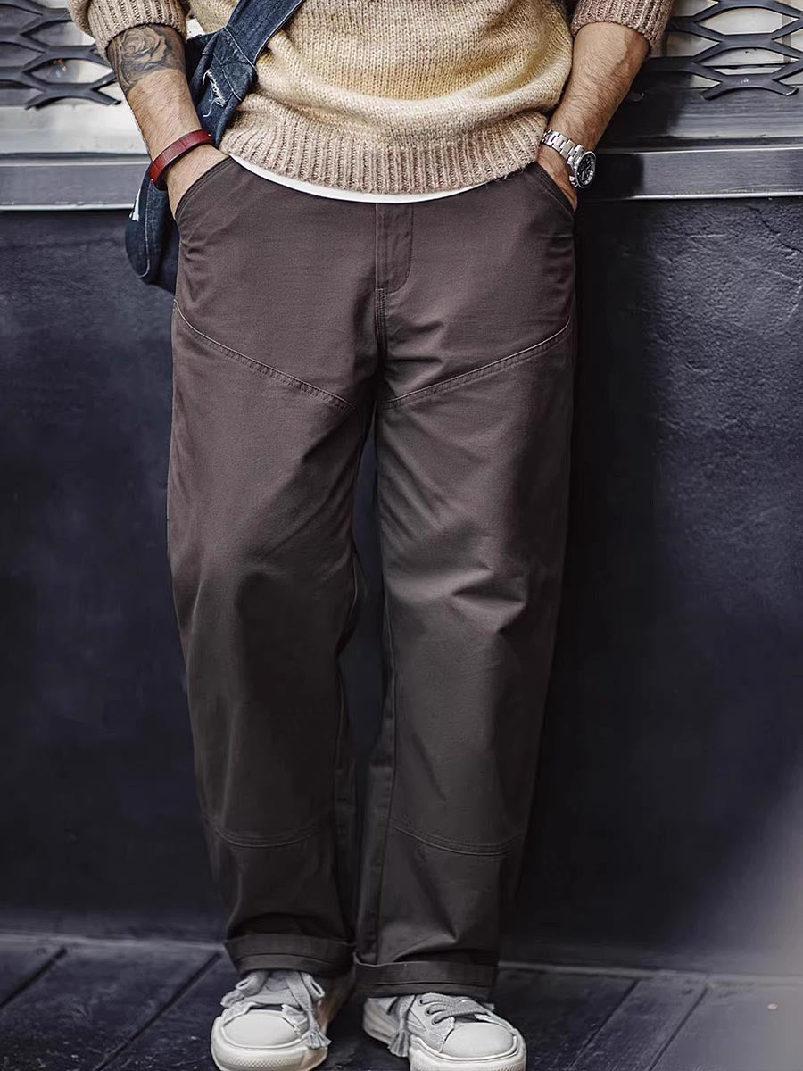 Straight-cut lumberjack trousers with exposed stitching detail.