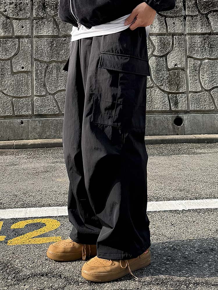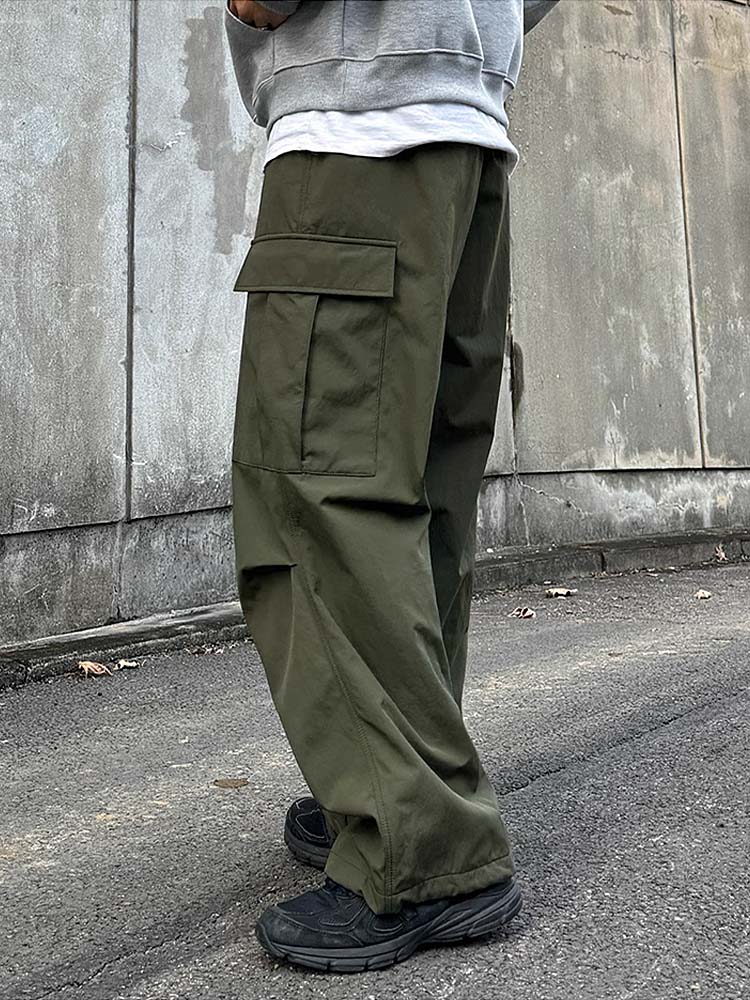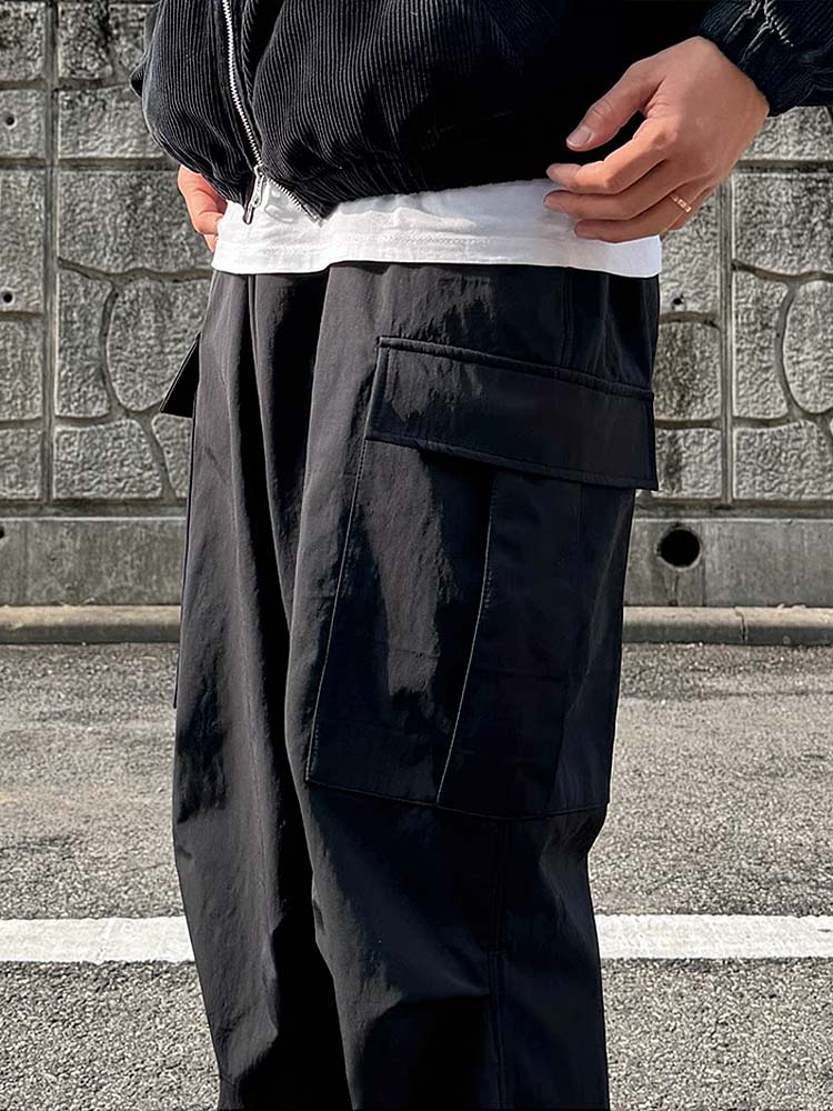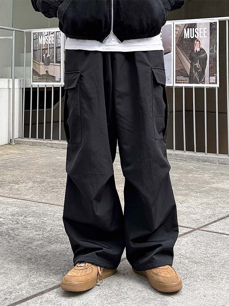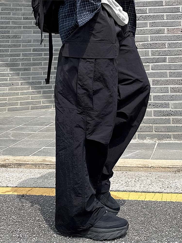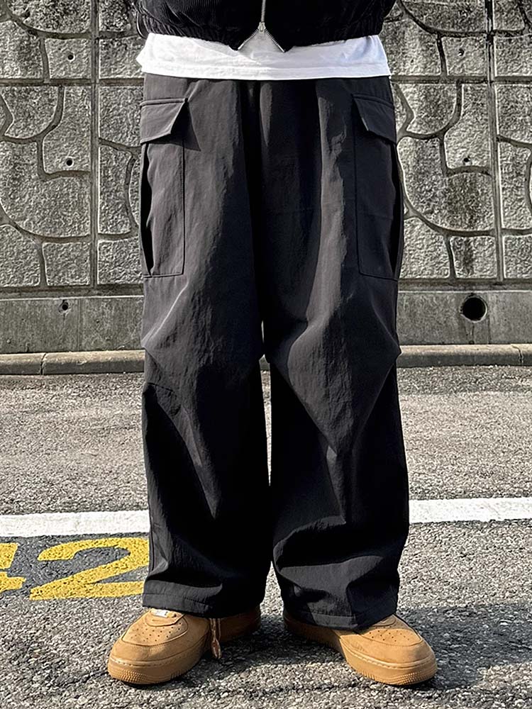 Easy-to-wear relaxed parachute pants with functional pockets.
