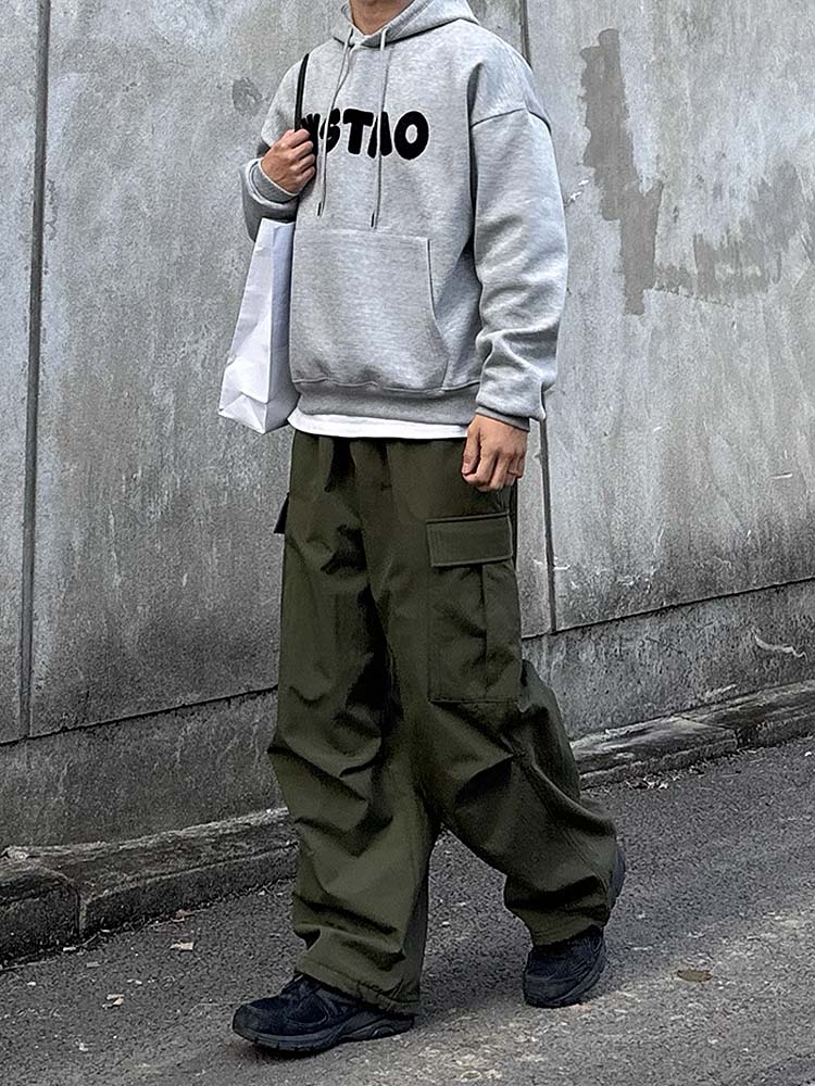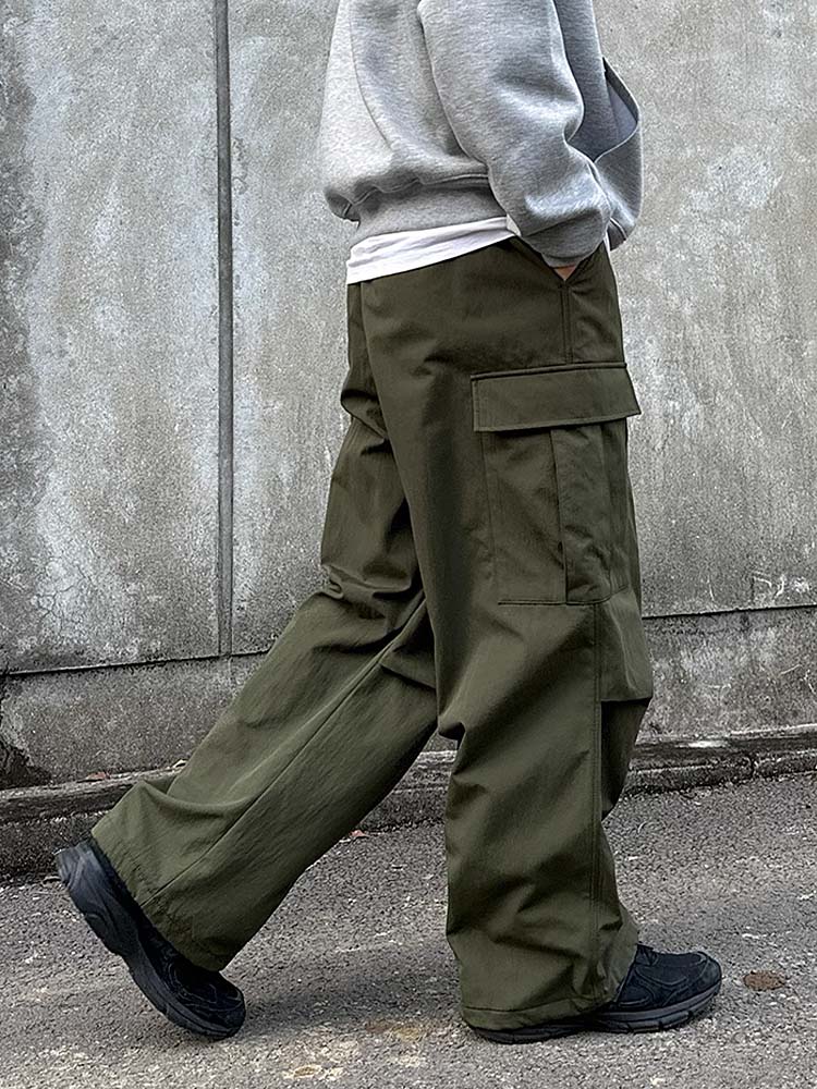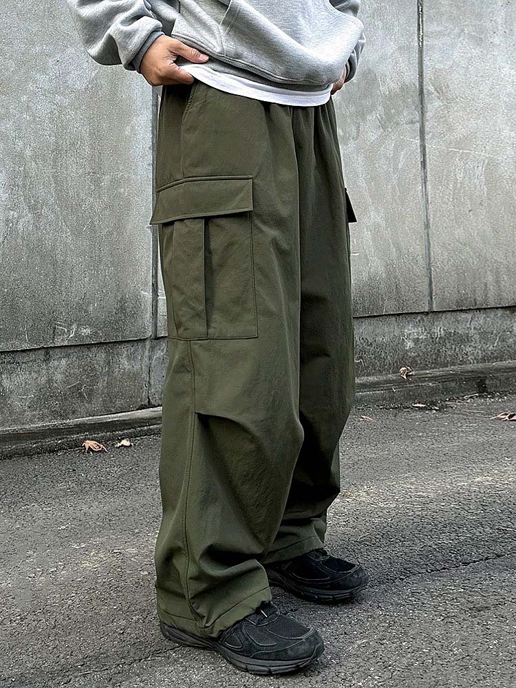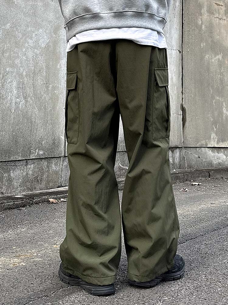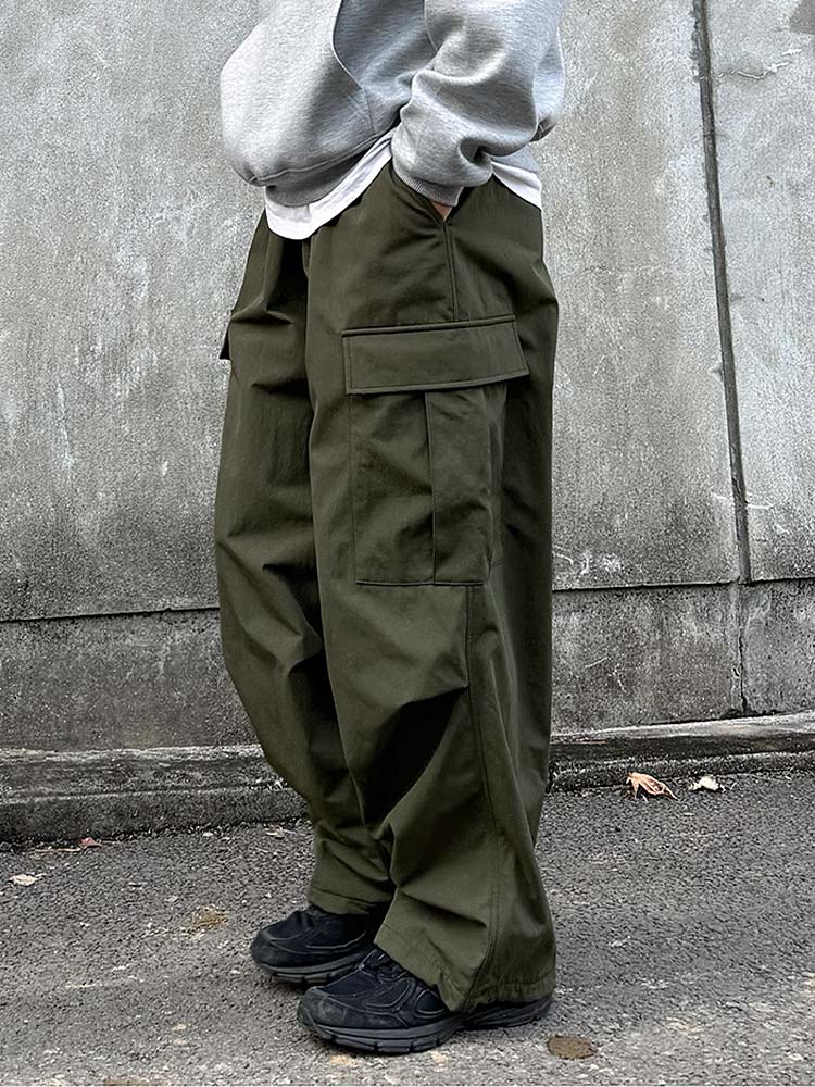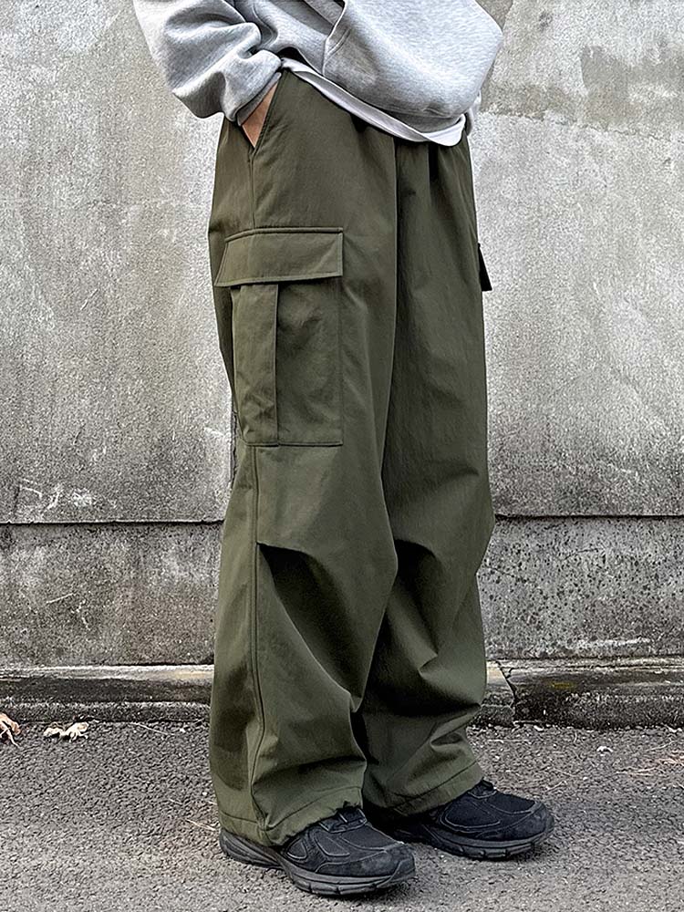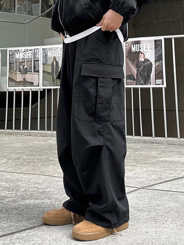 Easy-to-wear relaxed parachute pants with functional pockets.