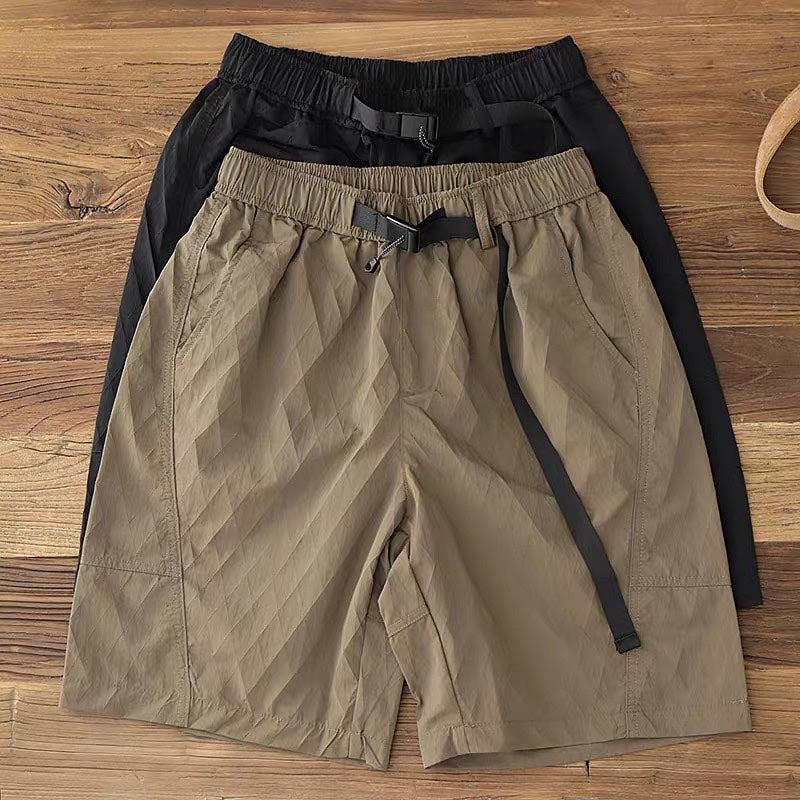 Outdoor urban textured shorts in 100% nylon. Available in Camel and Noir.