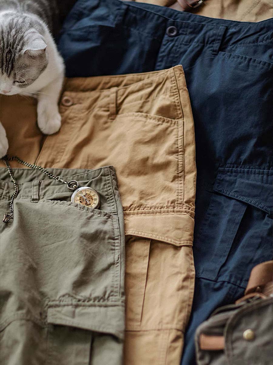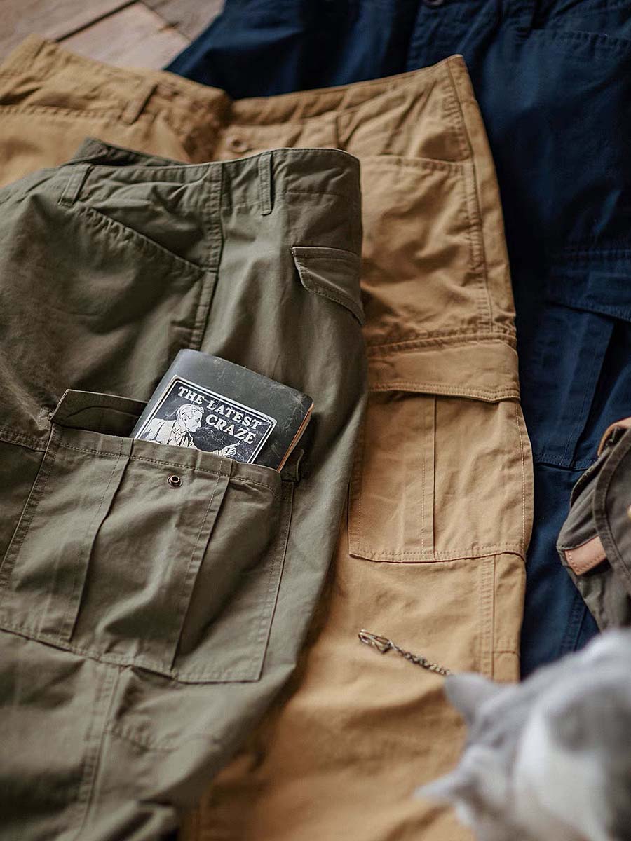 Casual cargo trousers. Available in Navy, Sand and Army Green.
