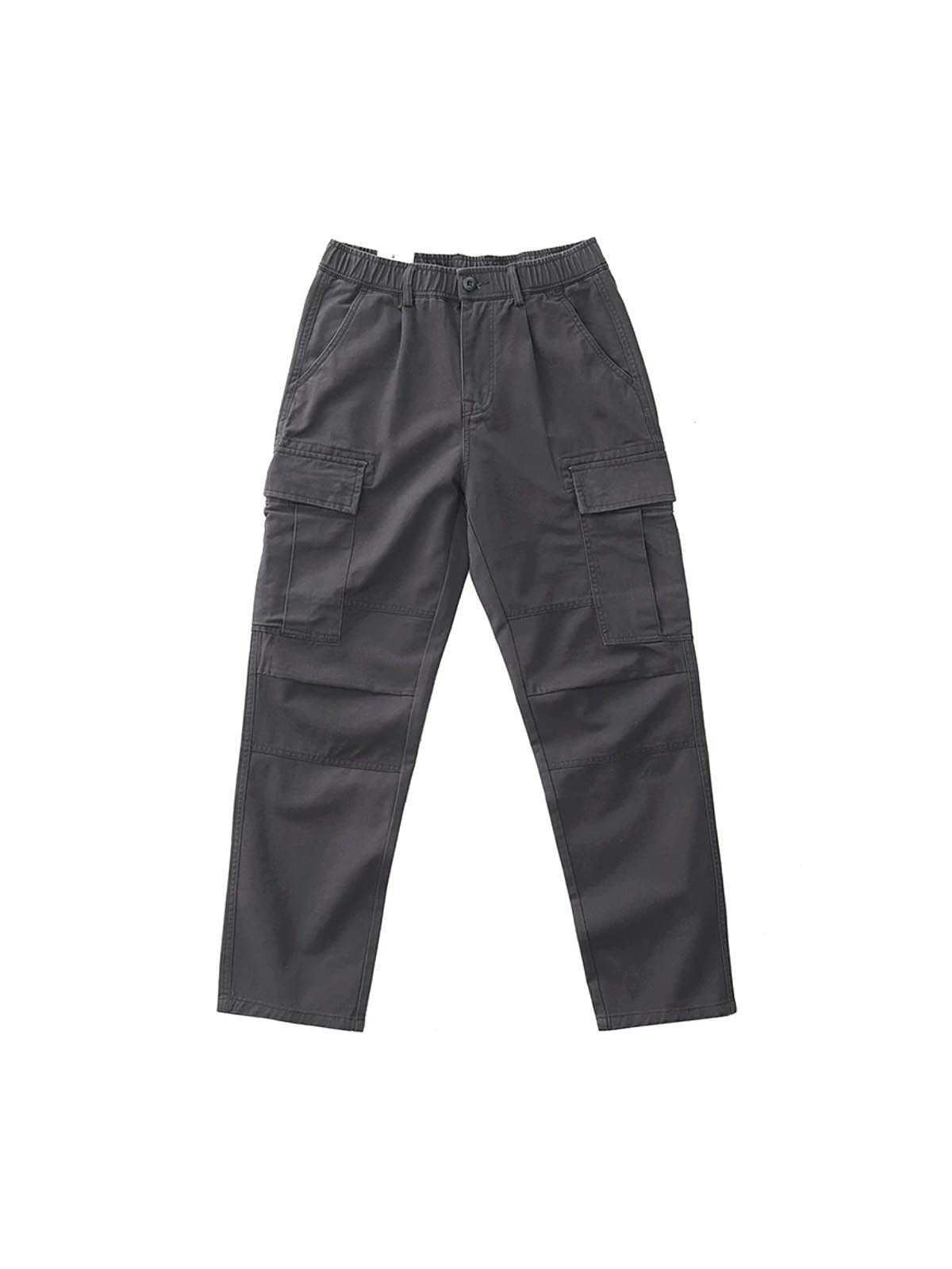 Everyday casual cargo trousers with elastic waistband and drawstring.