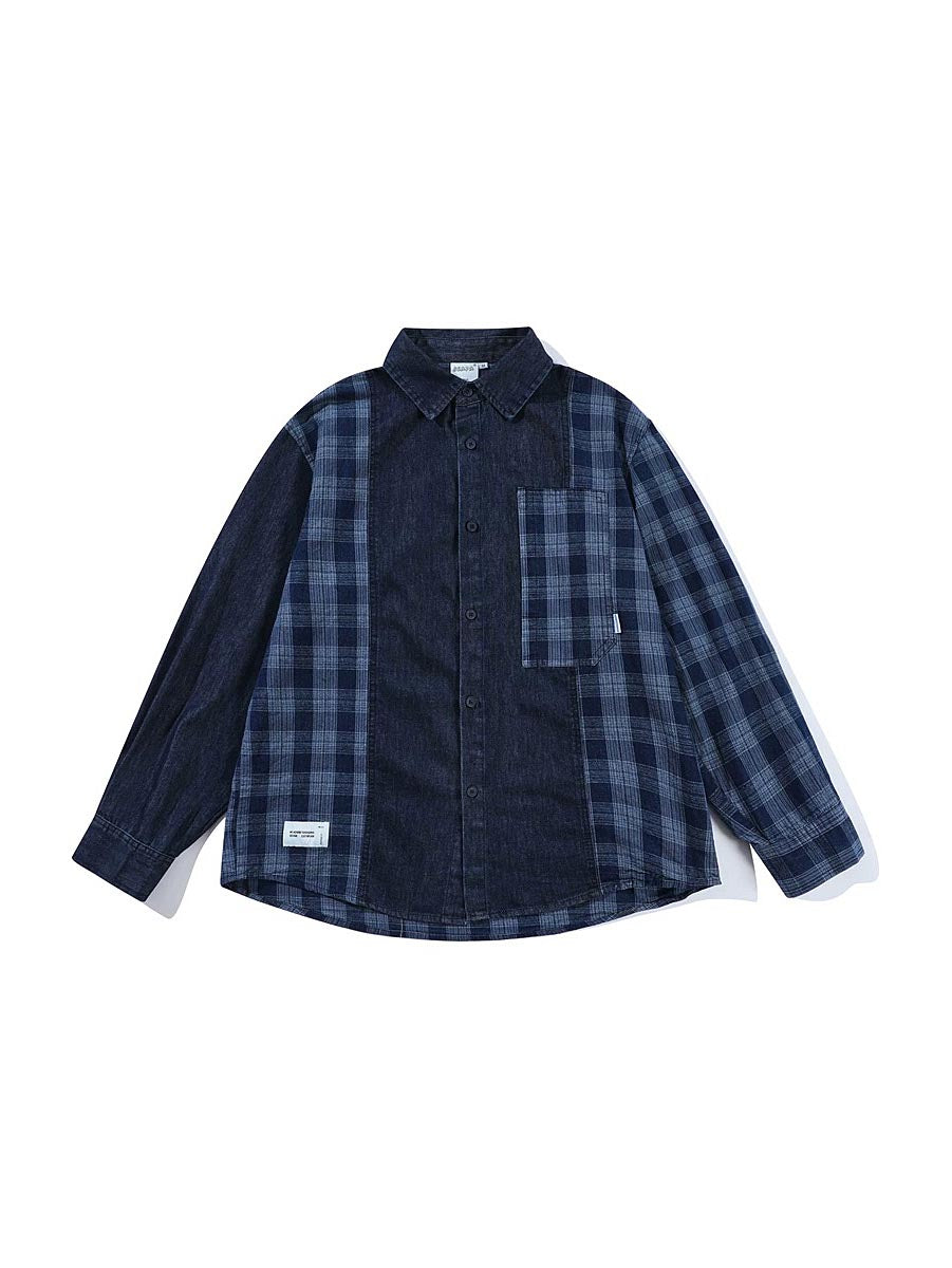 Smart casual long sleeve shirt with patchwork detail.