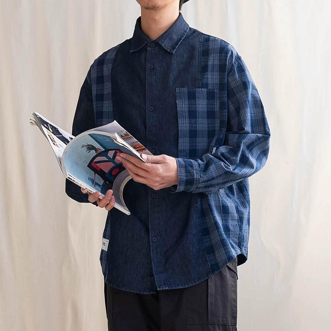 649 Mio Patchwork Long-Sleeve Shirt