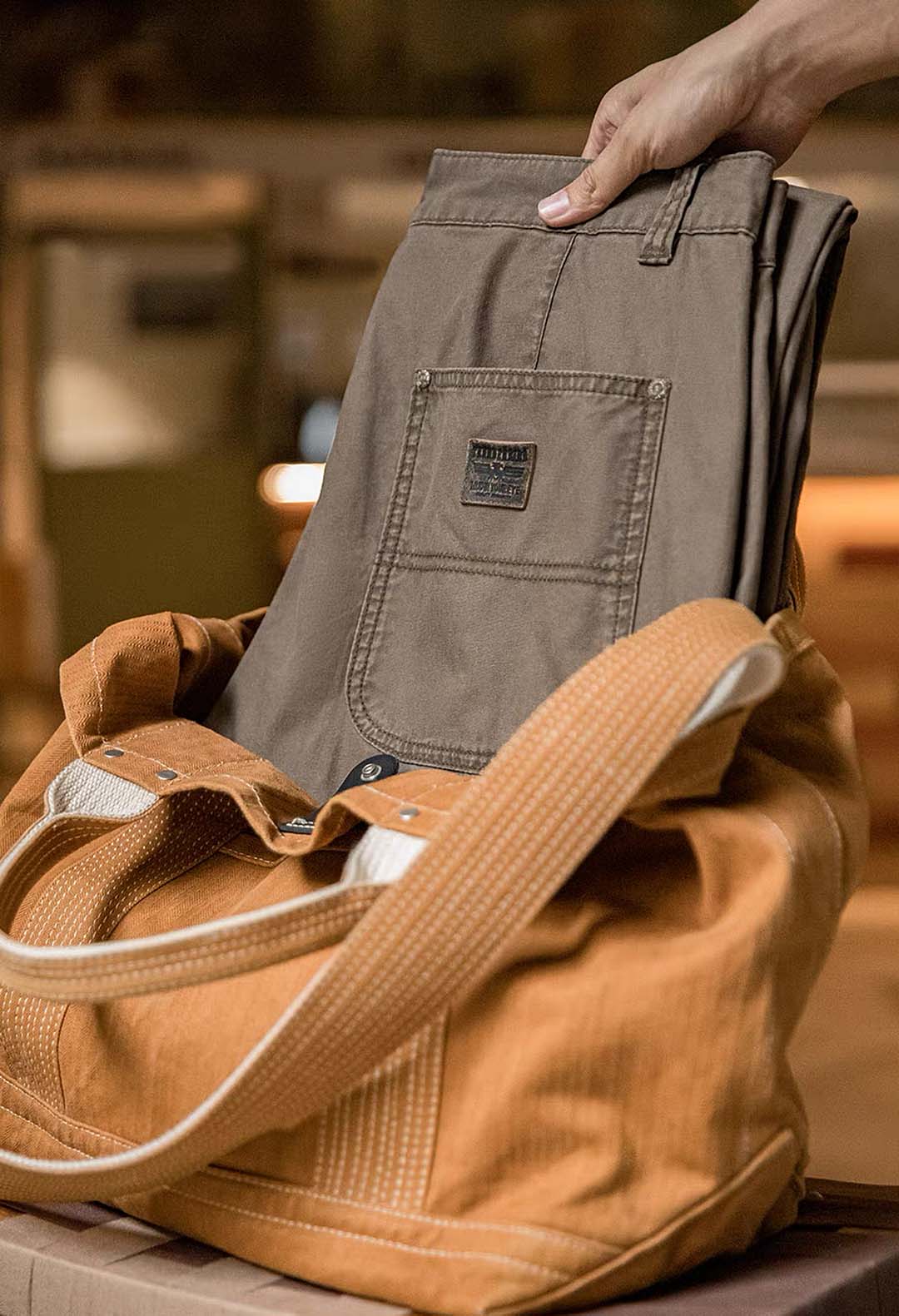 A workwear lumberjack trousers with functional details. Available in Washed Brown.