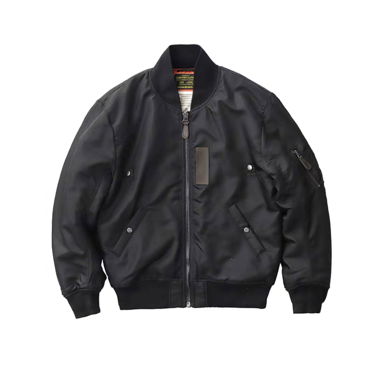 Classic bomber jacket with ruched sleeve detail and contrast lining. Available in 4 colorways.