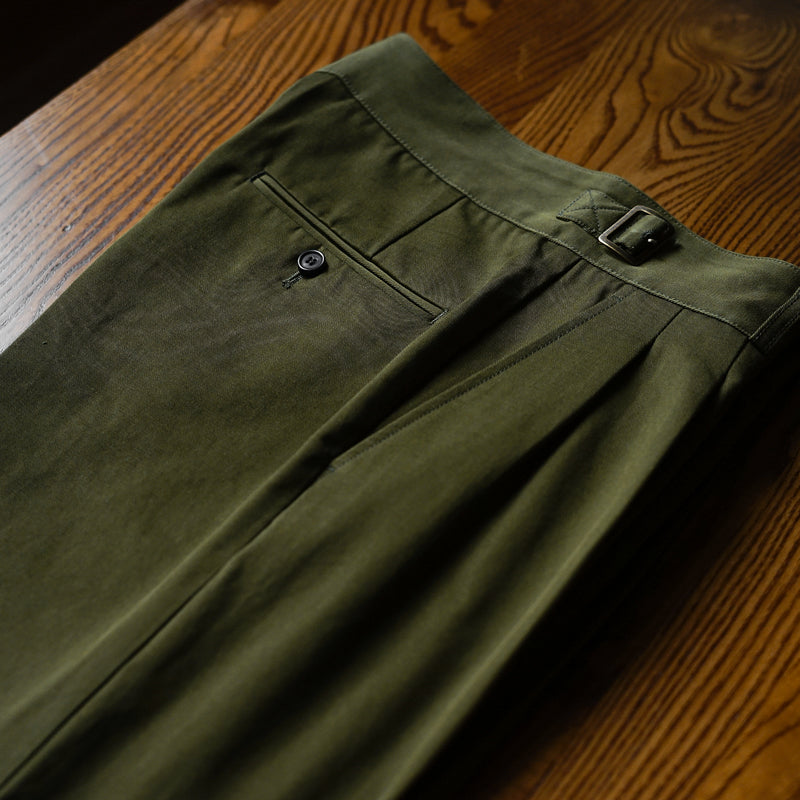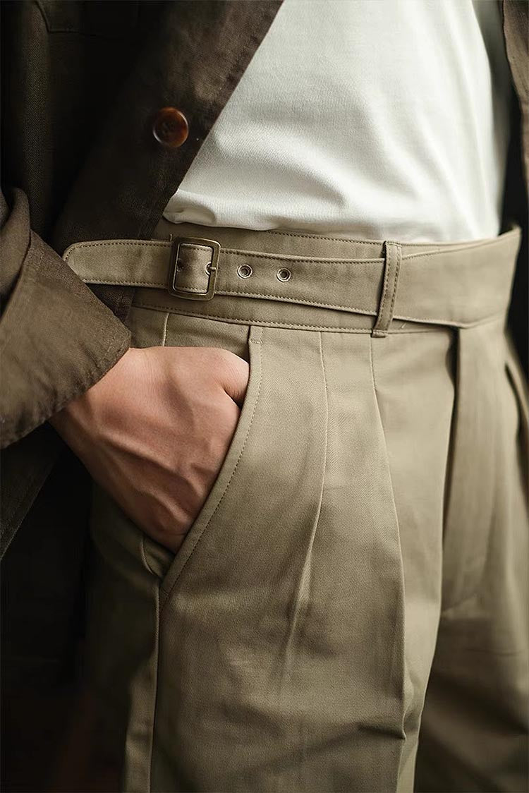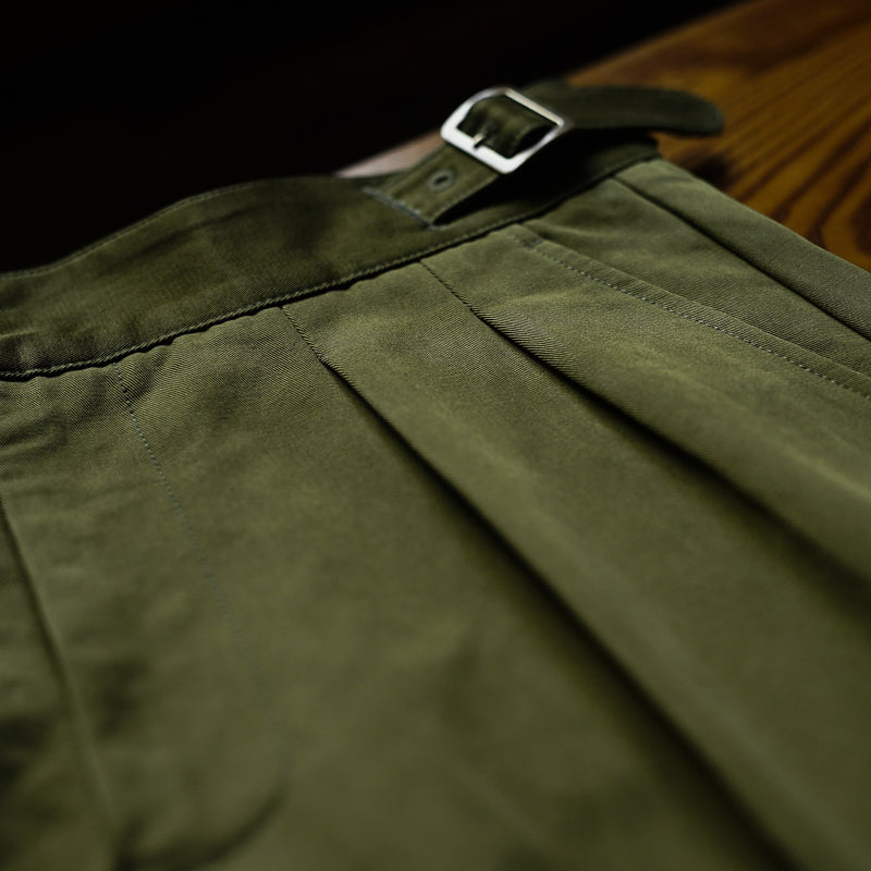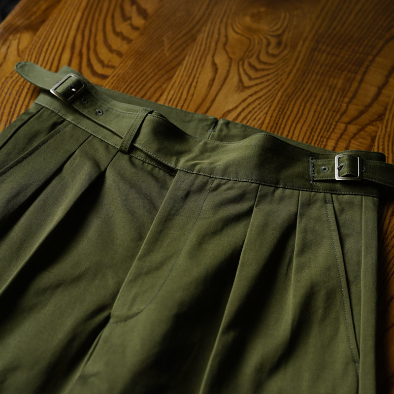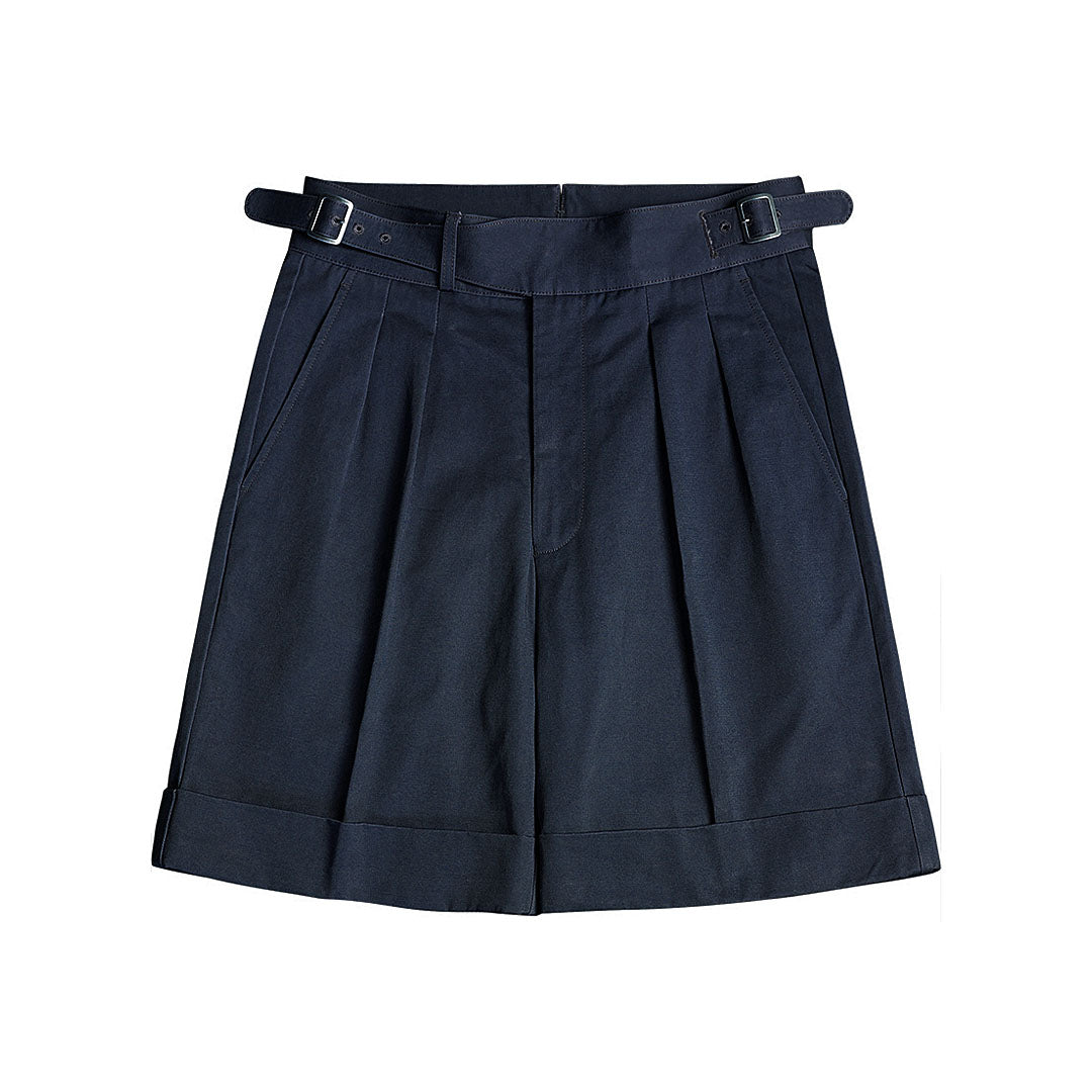 Workwear Gurkha shorts designed with front pleats which allows ease and comfort. Slightly adjustable at waist finished with folded cuff hem.